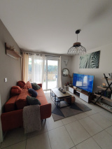 La pièce de vie, agréable et bien agencée, s’ouvre sur une terrasse avec rangement extérieur, prolongée par un jardin privatif de 16 m² exposé plein sud et sans vis-à-vis. Un véritable espace de vie supplémentaire, idéal pour profiter du soleil montpelliérain dans un environnement paisible.