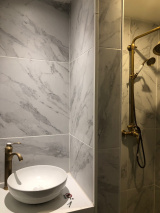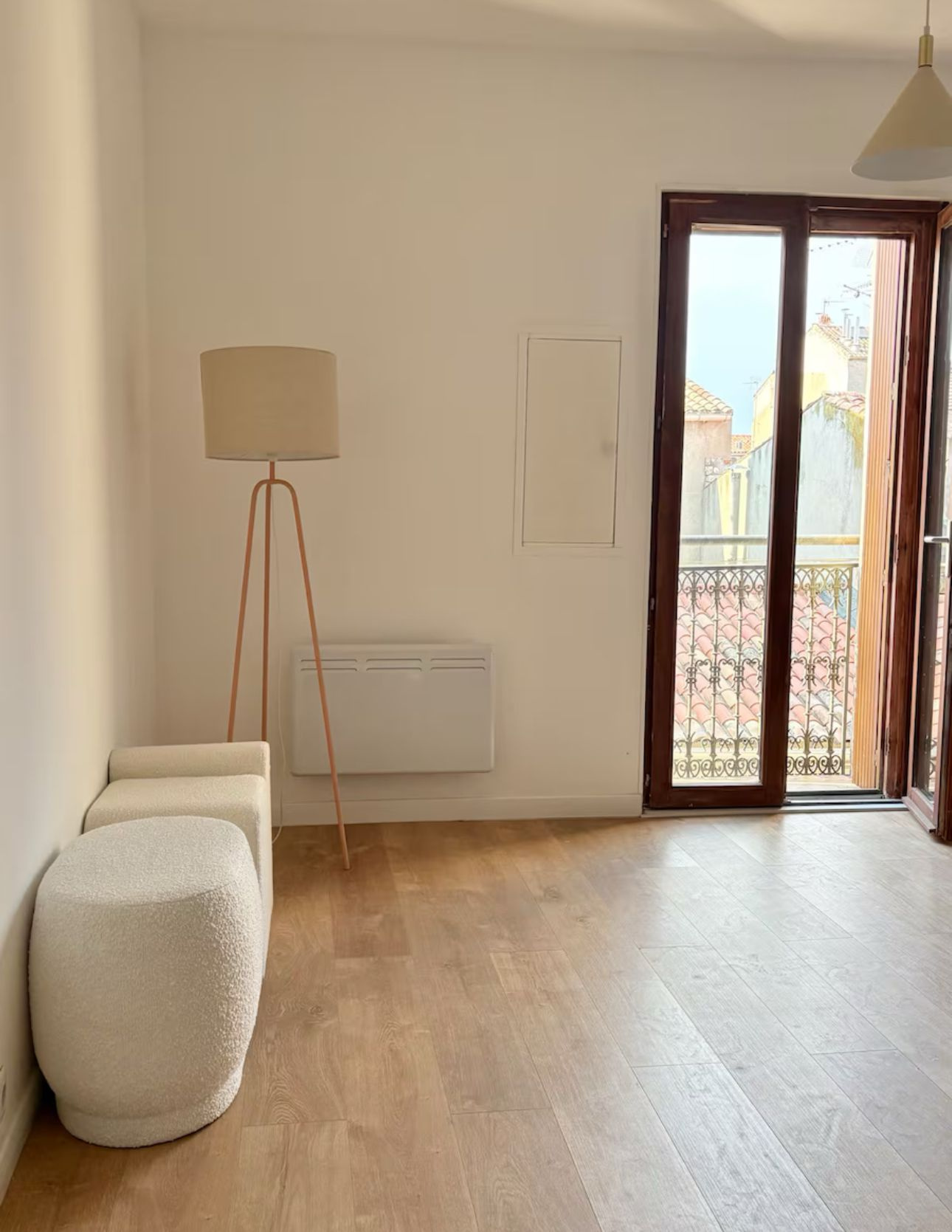 La pièce de vie, d’une surface généreuse d’environ 25 m², offre un beau volume très agréable à aménager. Elle s’ouvre sur un balcon charmant, donnant sur les toits et les façades anciennes du quartier. La cuisine, fonctionnelle et bien agencée, ainsi que la salle d’eau moderne avec robinetterie laiton complètent cet ensemble au charme authentique.